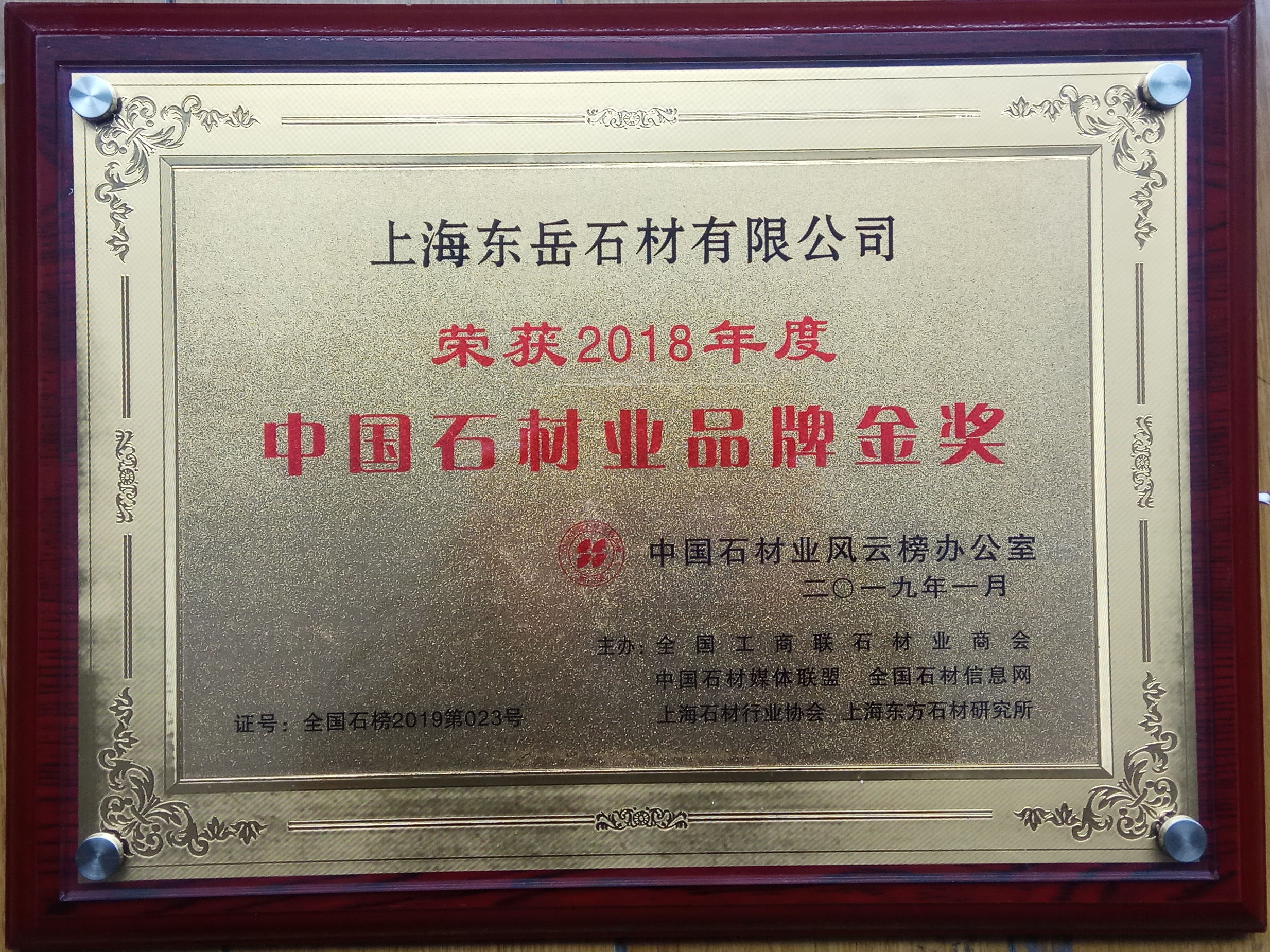 上海東岳石材有限公司榮獲2018年度石材行業(yè)品牌金獎、2018年度石材行業(yè)質(zhì)量金獎、2018年度石材業(yè)誠信經(jīng)營先進單位,這是全體東岳人共同努力、共同奮斗的結(jié)果,也是業(yè)界對我們的肯定,希望公司全體同仁繼續(xù)加油!
